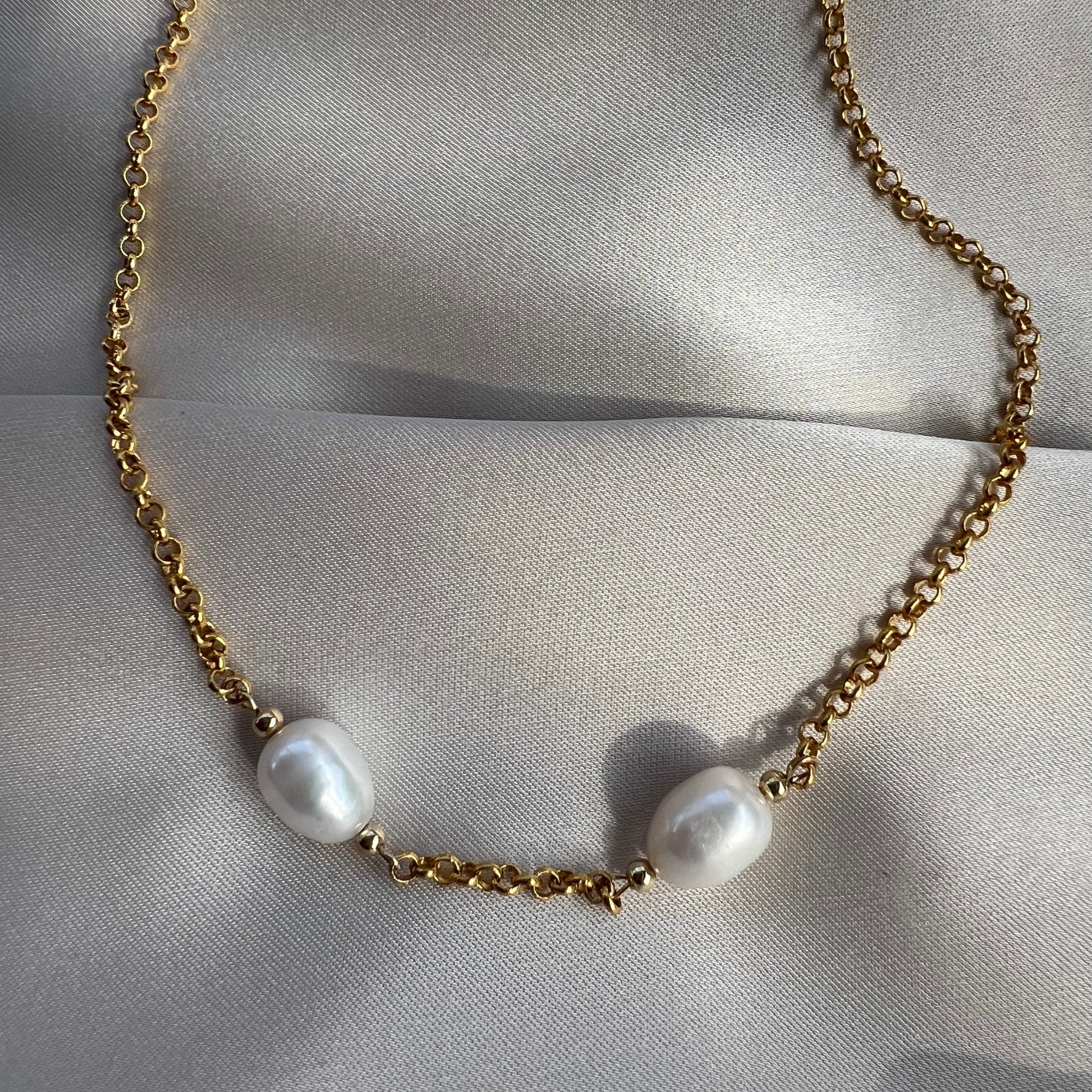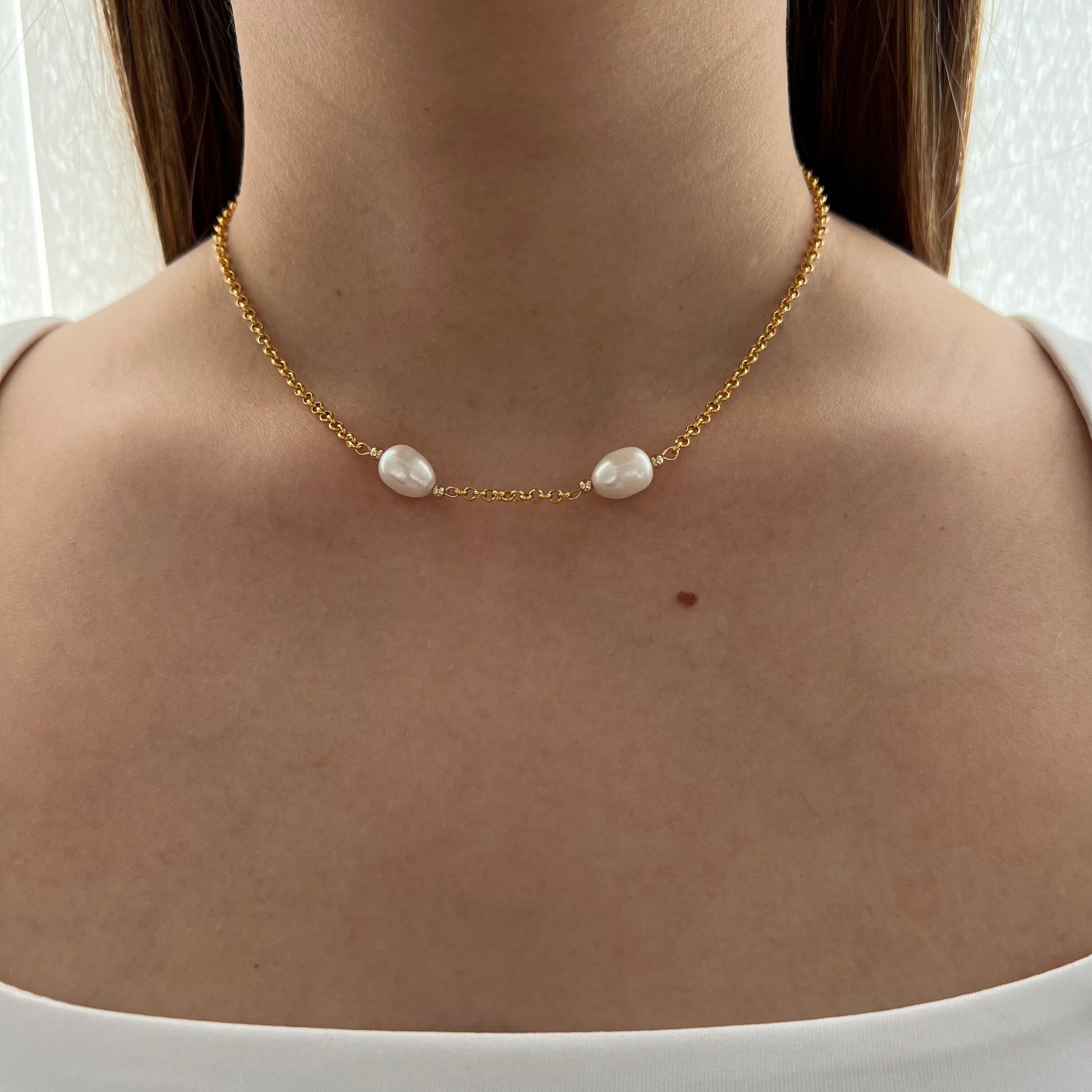 שרשרת אנט משלבת באלגנטיות פשטות וחן. פנינים כפולות מבריקות תלויות בשרשרת זהב, ומוסיפות קסם נצחי לסגנון שלך. מתאים לכל אירוע, זה מאפשר לך לבטא את האינדיבידואליות שלך בביטחון. שרשרת זו היא סמל ליופי קלאסי המשפר את המראה שלך ללא מאמץ, בין אם לאירוע או ללבוש יומיומי.